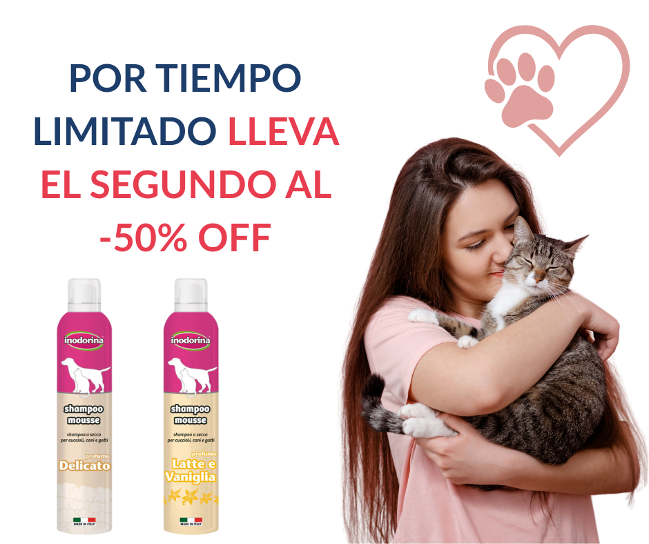 Es una espuma limpiadora que no necesita enjuague. Solo se aplica sobre el pelaje seco, se masajea y se cepilla. Limpia profundamente y deja el pelaje suave y perfumado sin usar agua.